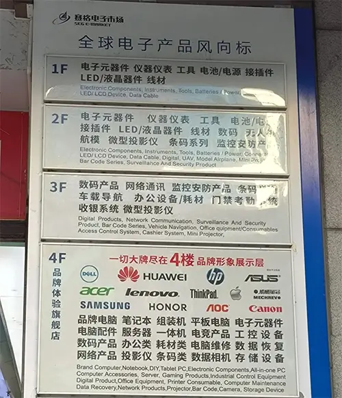Among all 20+ Huaqiangbei specialized electronics markets, SEG E-market stands out for its well-established component supply chain and niche categories like chips and PCBs.