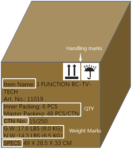 Basically, suppliers will mark the total number of carton boxes and the serial number of a certain box. Suppose your products are packed into 250 cartons, your supplier will number these boxes from 1 to 250. Take the 15th box for example. It will be labeled as “CTN No.: 15/250”. This mark is of great help to handlers when collecting, sorting, and dispatching your shipments.