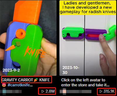 The best e-commerce niches indeed vary from one dropshipper to another. Some individuals have a keen eye for spotting trending products that are easy to sell with small advertising expenses and can earn fast money. Take ‘3D Gravity Carrot Knife’ plastic toys as an example, which went viral on social media platforms like TikTok. Some quick-thinking sellers spotted this trend and sold such items rapidly on Amazon, eBay, etc., capitalizing on the demand surge and making quick profits.